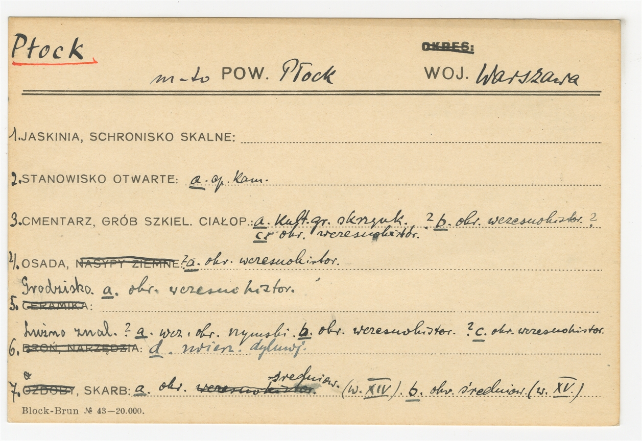 Karta stanowiska "Płock m-to pow. Płock woj. Warszawa" (druk rękopis) - strona 1