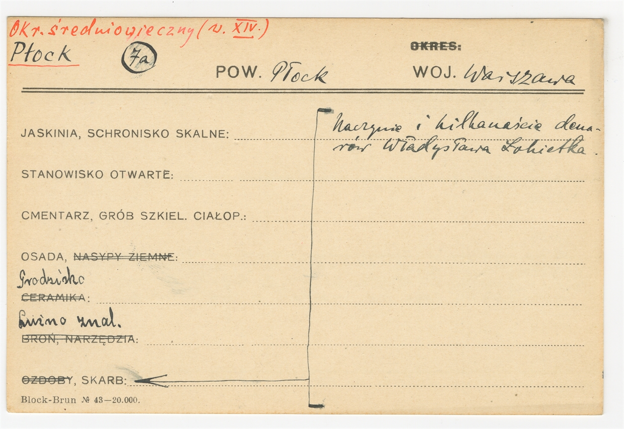 Karta stanowiska "Płock pow. Plock woj. Warszawa" (druk rękopis) - strona 1