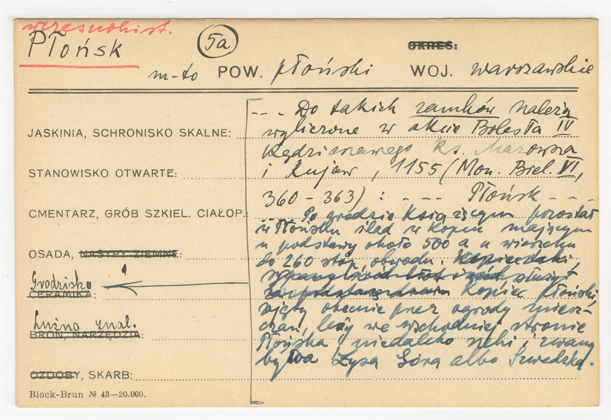 Element 1 - Karta stanowiska "Płońsk m-to pow. płoński woj. warszawskie" (druk rękopis) - strona 1