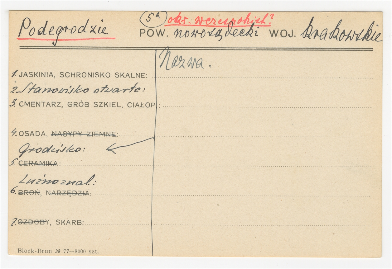Karta stanowiska "Podegrodzie pow. nowosądecki woj. krakowskie" (druk rękopis) - strona 1