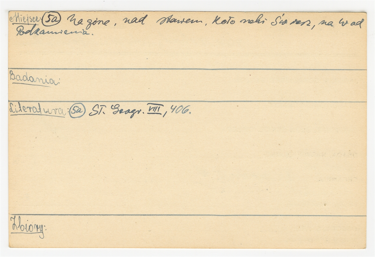 Karta stanowiska "Podkamień pow. rohatyński woj. stanisławowskie" (druk rękopis) - strona 2