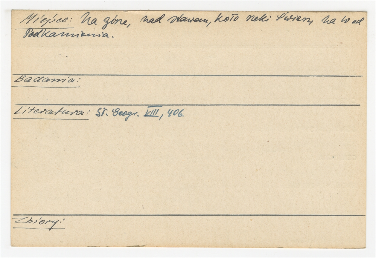 Karta stanowiska "Podkamień pow. rohatyński woj. stanisławowskie" (druk rękopis) - strona 2