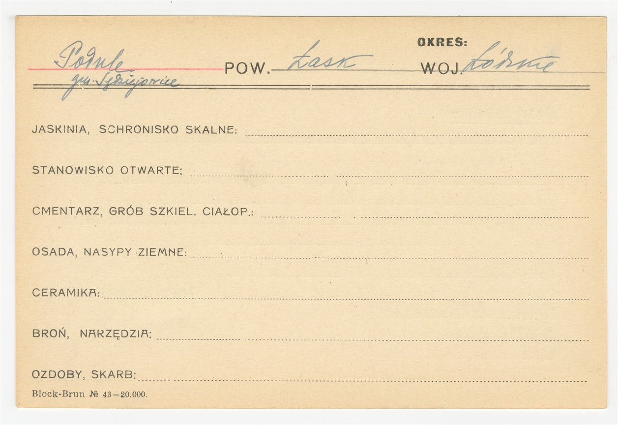 Karta stanowiska "Podule gm. Sędziejowice pow. Łask woj. Łódzkie" (druk rękopis) - strona 1