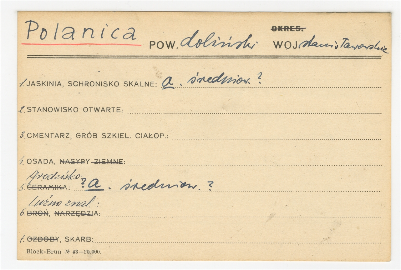 Karta stanowiska "Polanica pow. doliński woj. stanisławowskie" (druk rękopis) - strona 1