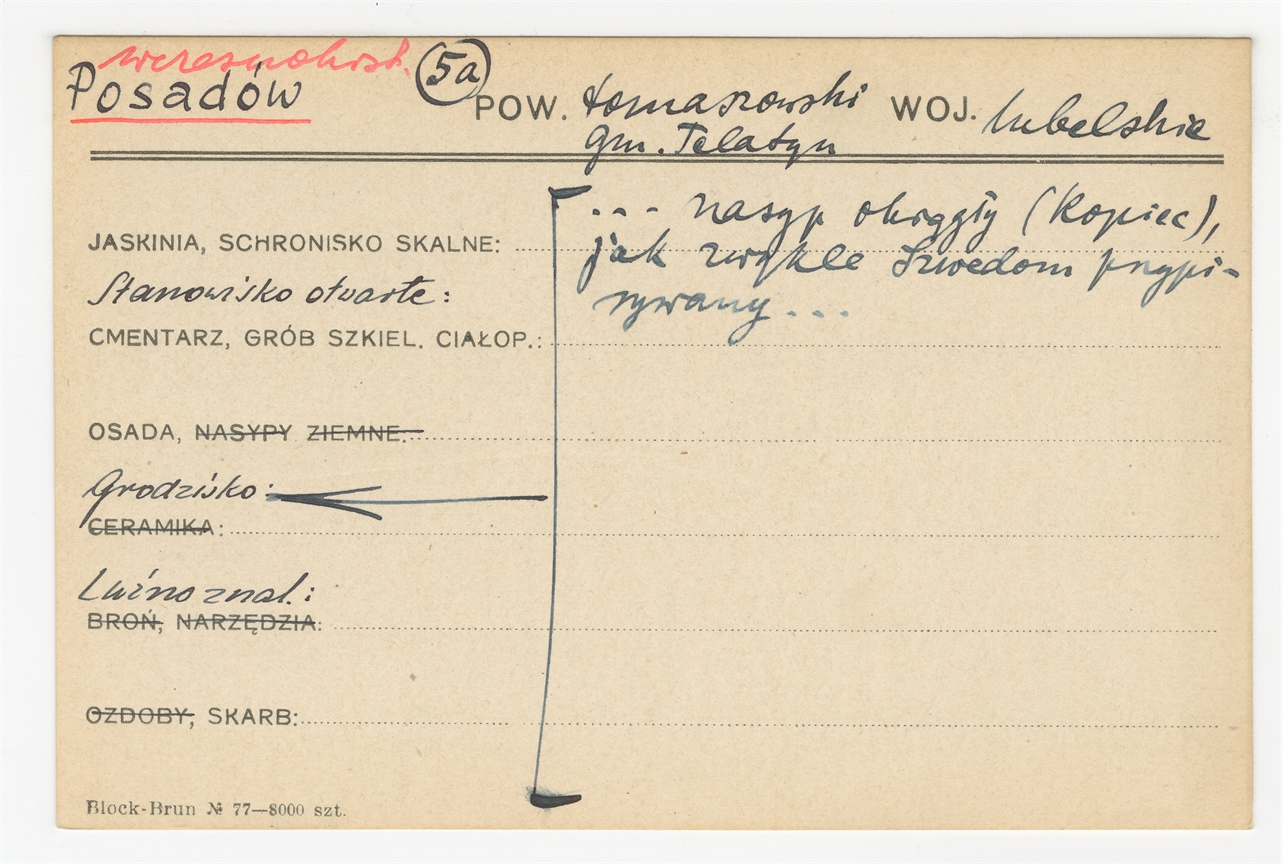 Karta stanowiska "Posadów gm. Telatyn pow. tomaszowski woj. lubelskie" (druk rękopis) - strona 1