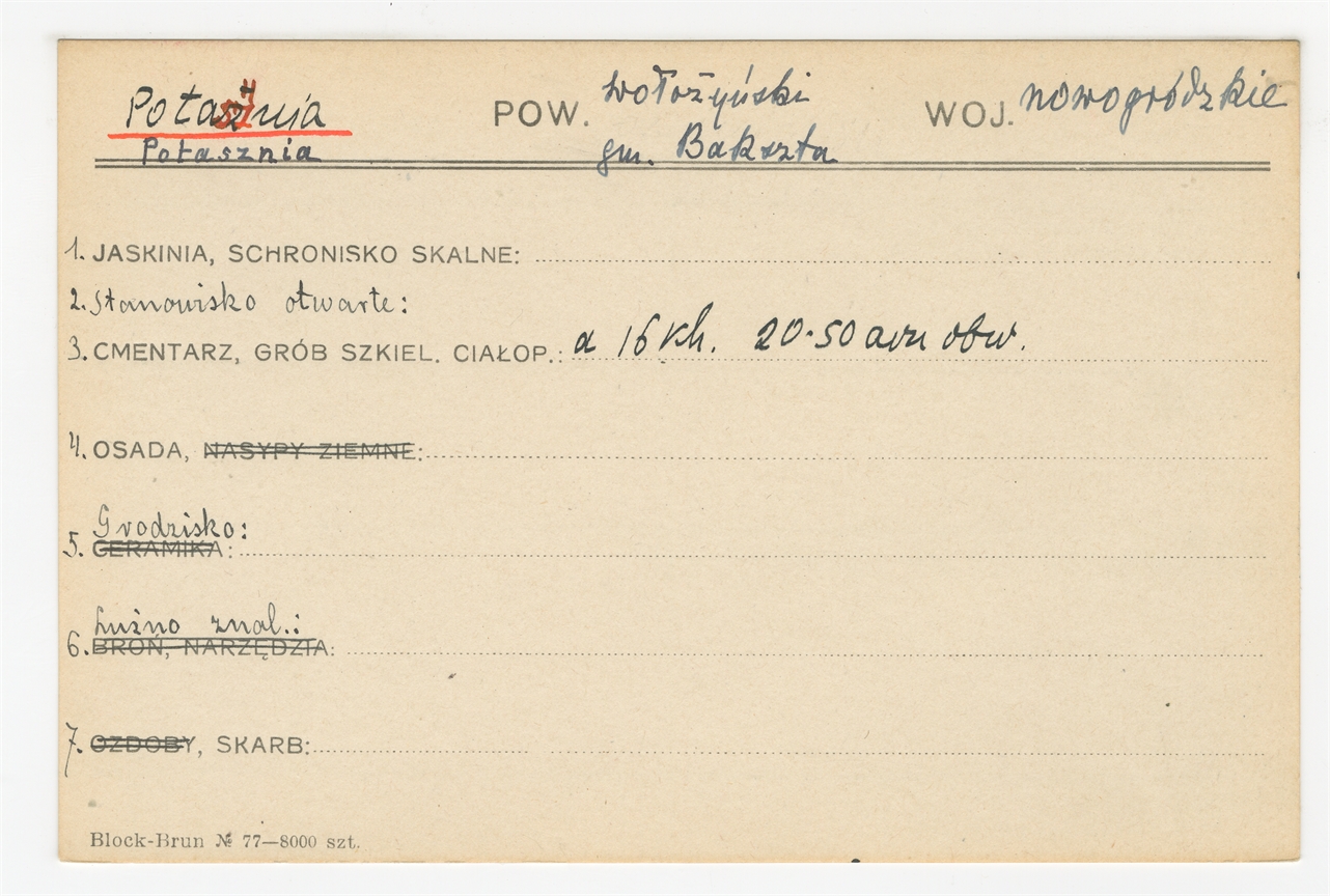 Karta stanowiska "Potasznia gm. Bakszta pow. wołożyński woj. nowogródzkie" (druk rękopis) - strona 1