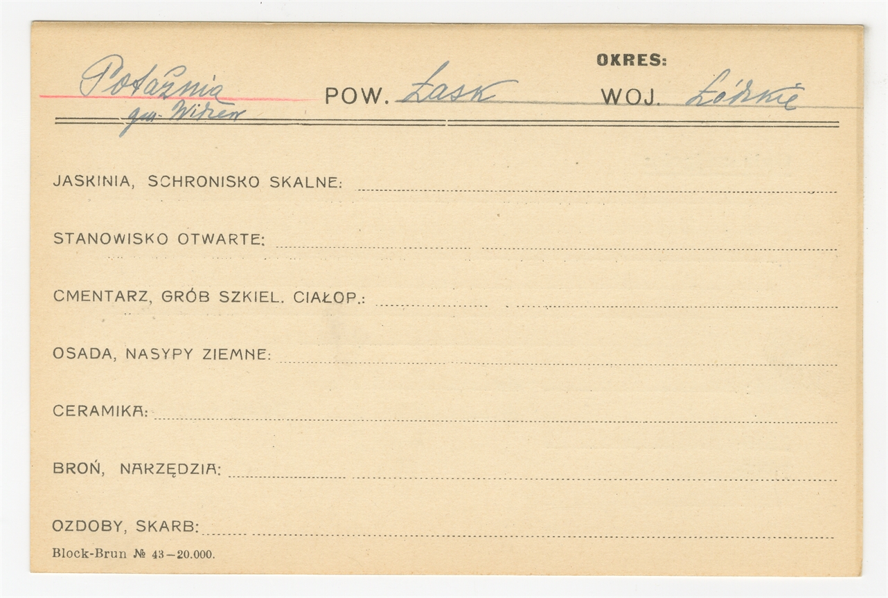 Karta stanowiska "Potażnia gm. Widzew? pow. Łask woj. Łódzkie" (druk rękopis) - strona 1