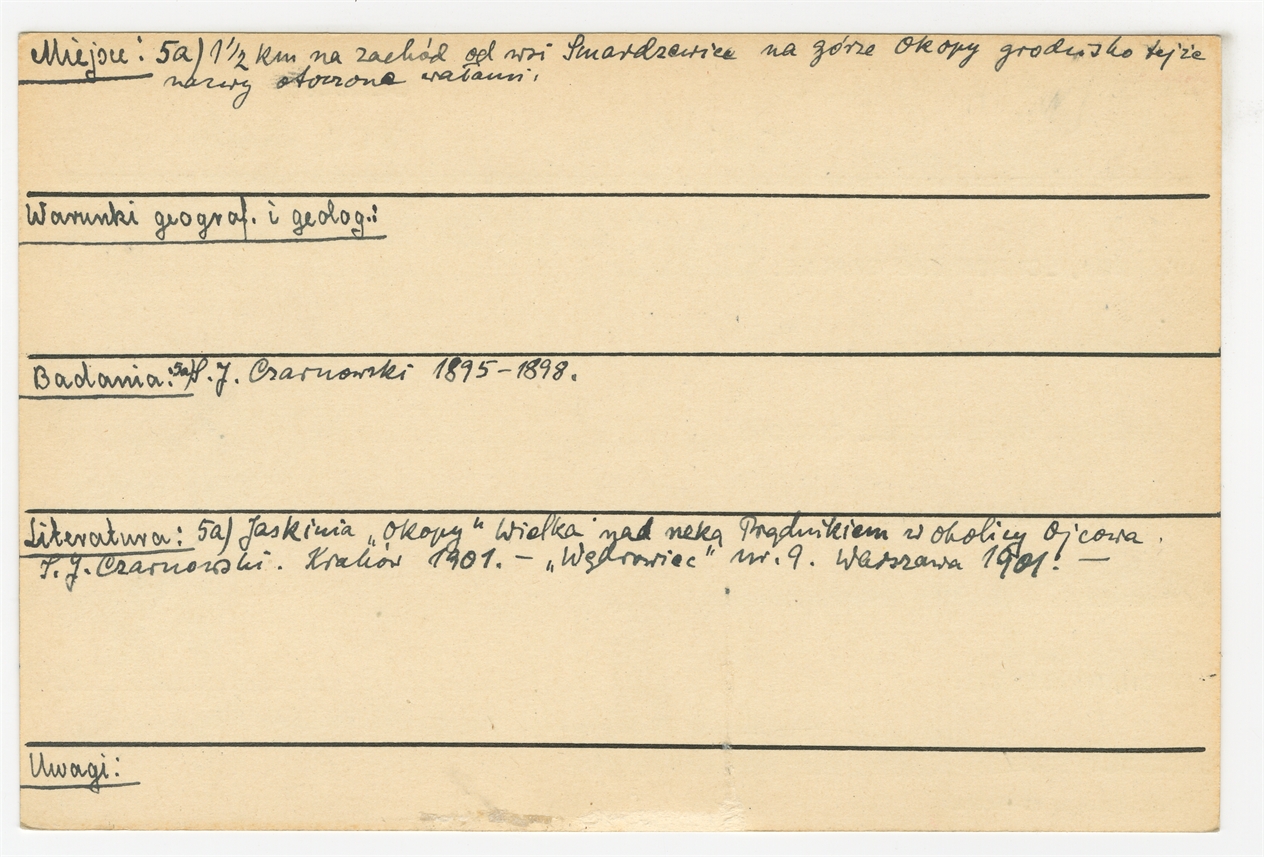 Karta stanowiska "Prądnik Czajowski (mylnie Ojców) gm. Cianowice pow. Olkusz woj. Kilece" (druk rękopis) - strona 2