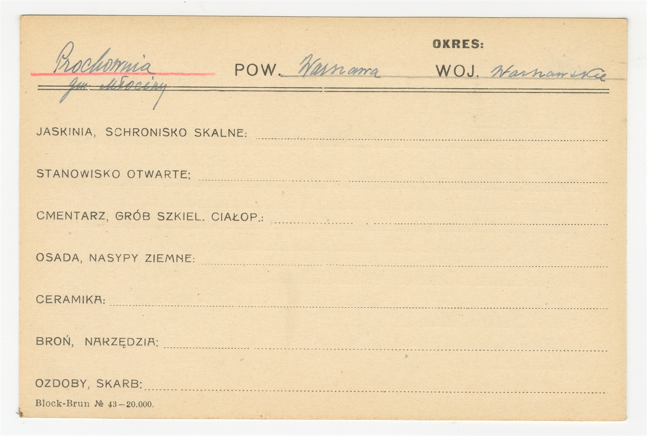 Karta stanowiska "Prochownia gm. Młociny pow. Warszawa woj. warszawskie" (druk rękopis) - strona 1