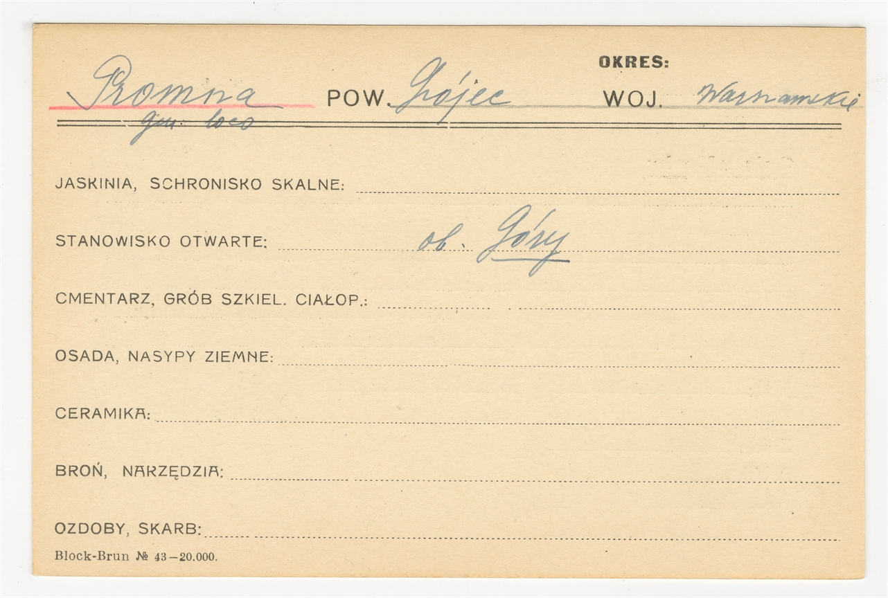 Element 1 - Karta stanowiska "Promna gm. Loco pow. Grójec woj. Warszawskie" (druk rękopis) - strona 1