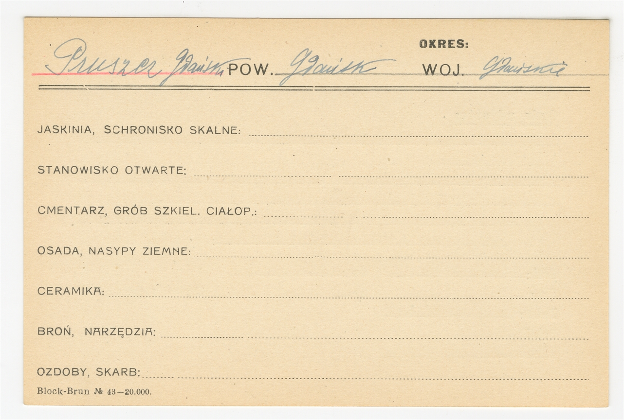 Karta stanowiska "Pruszcz Gdański pow. Gdańsk woj. Gdańskie" (druk rękopis) - strona 1