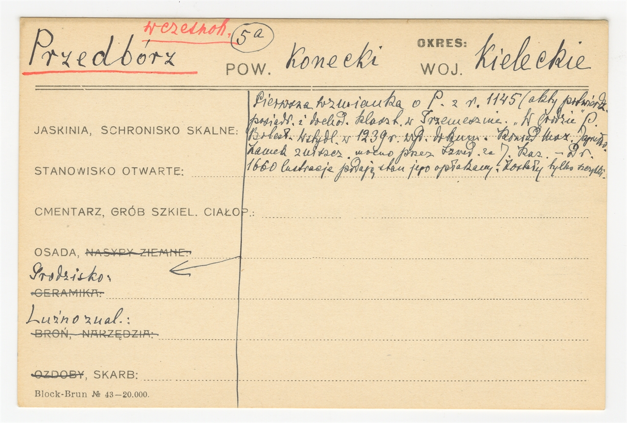 Karta stanowiska "Przedbórz pow. konecki woj. kieleckie" (druk rękopis) - strona 1