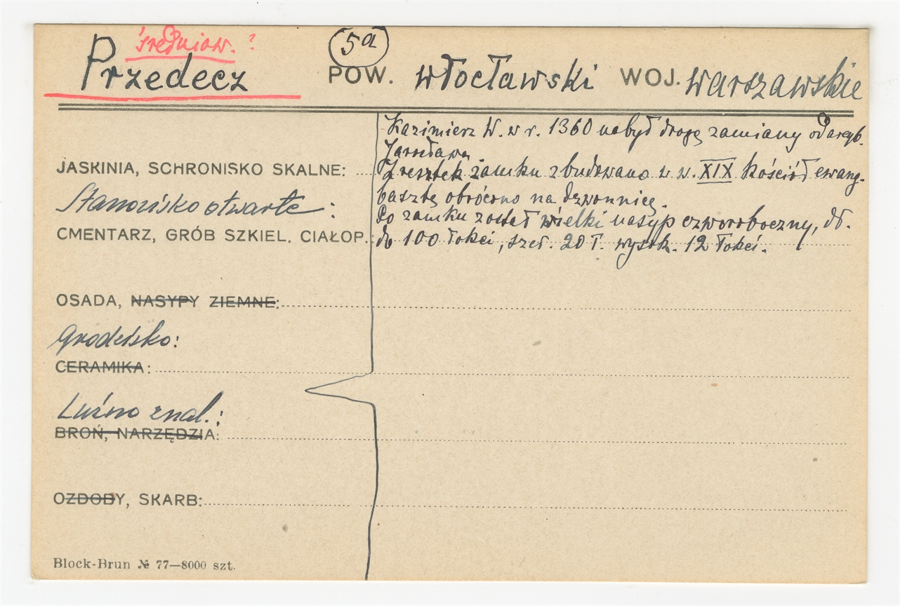 Element 1 - Karta stanowiska "Przedecz pow. włocławski woj. warszawskie" (druk rękopis) - strona 1