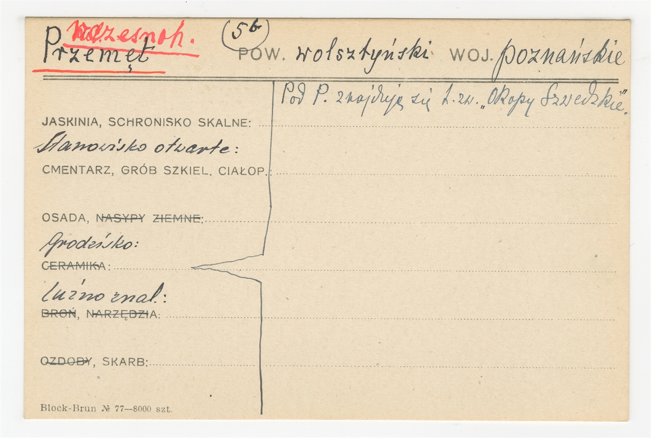 Karta stanowiska "Przemęt pow. wolsztyński woj. poznańskie (druk rękopis) - strona 1