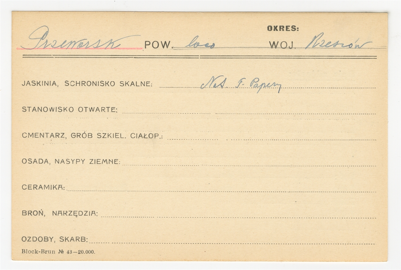 Karta stanowiska "Przeworsk pow. loco woj. Rzeszów" (druk rękopis) - strona 1