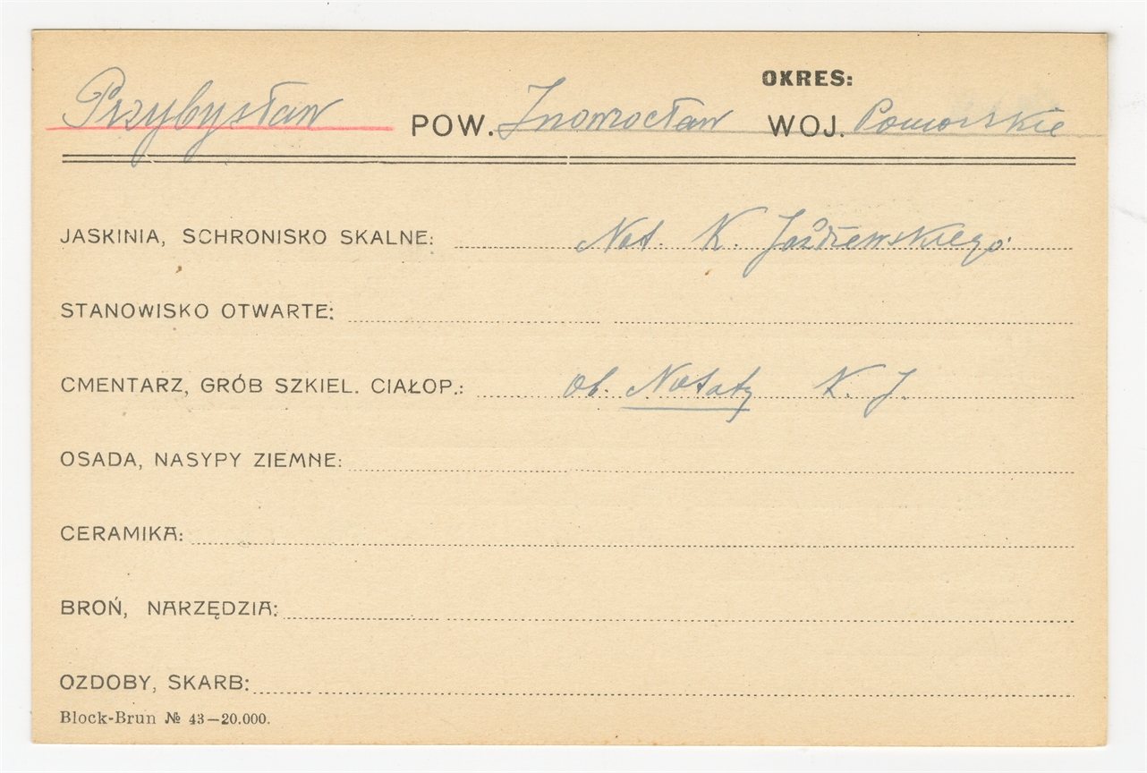 Karta stanowiska "Przybysław pow. Inowrocław woj. Pomorskie (druk rękopis) - strona 1