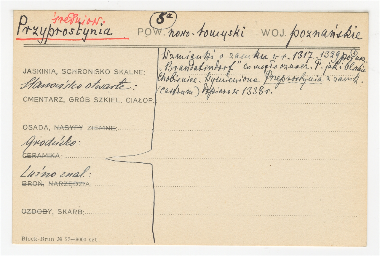 Karta stanowiska "Przyprostnia pow. nowo-tomyski woj. Poznańskie" (druk rękopis) - strona 1