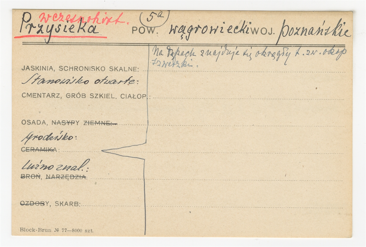 Karta stanowiska "Przysieka pow. wągrowiecki woj. poznańskie" (druk rękopis) - strona 1