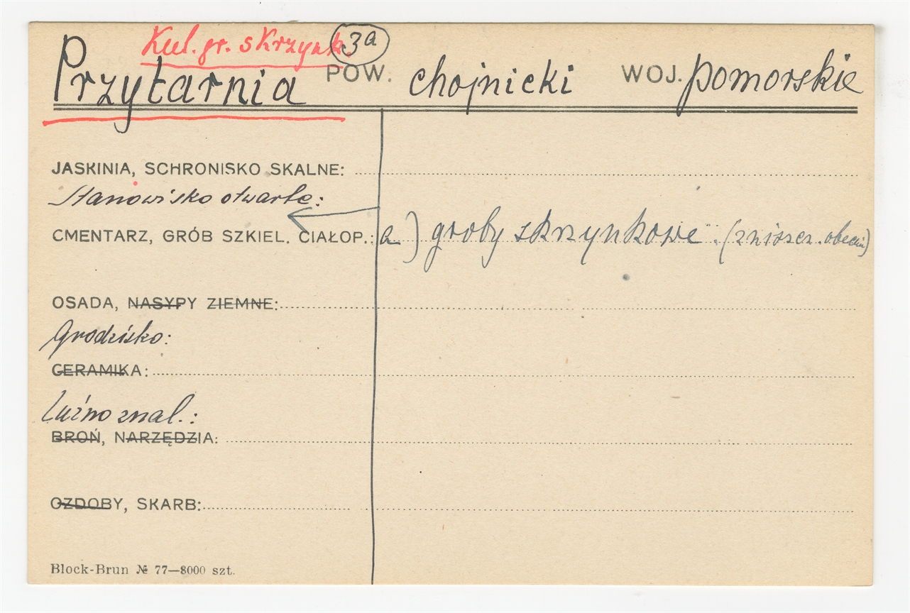 Karta stanowiska "Przytarnia pow. chojnicki woj. pomorskie" (druk rękopis) - strona 1