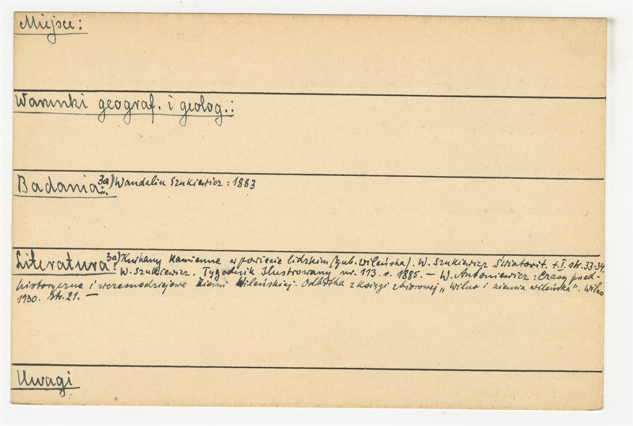 Karta stanowiska "Puziele gm. koniawska pow. Lida woj. Wilno [skreślone] Nowogródek" (druk rękopis) - strona 2