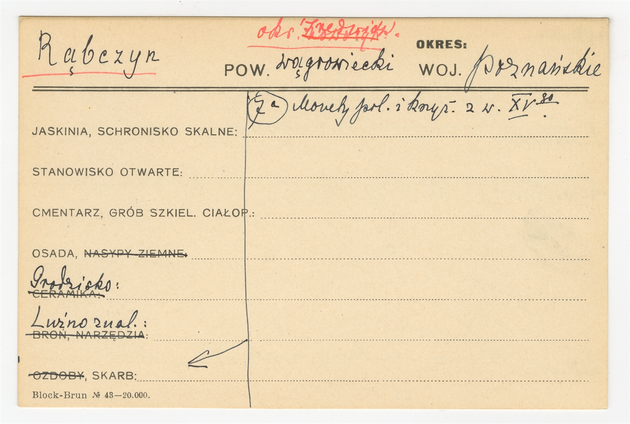 Karta stanowiska "Rąbczyn pow. wągrowiecki woj. poznańskie" (druk rękopis) - strona 1