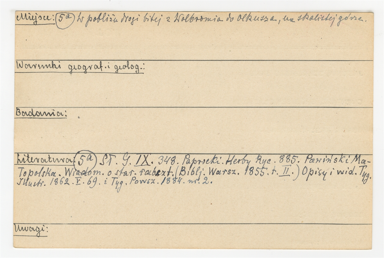 Karta stanowiska "Rabsztyn gm. Rabsztyn pow. olkuski woj. kieleckie" (druk rękopis) - strona 2