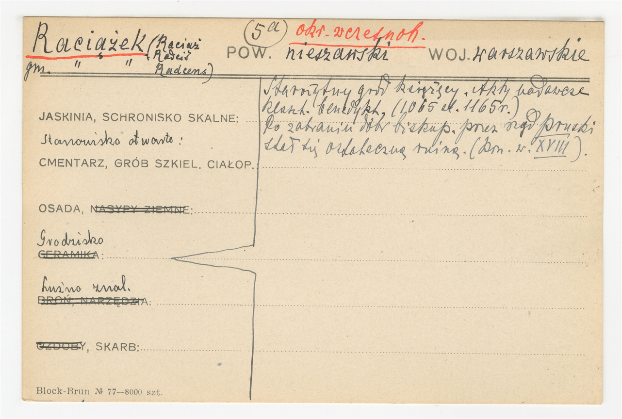 karta stanowiska "Raciążek (Raciąż Radecis Radcens) gm. Raciążek pow. nieszawski woj. warszawskie" (druk rękopis) - strona 1