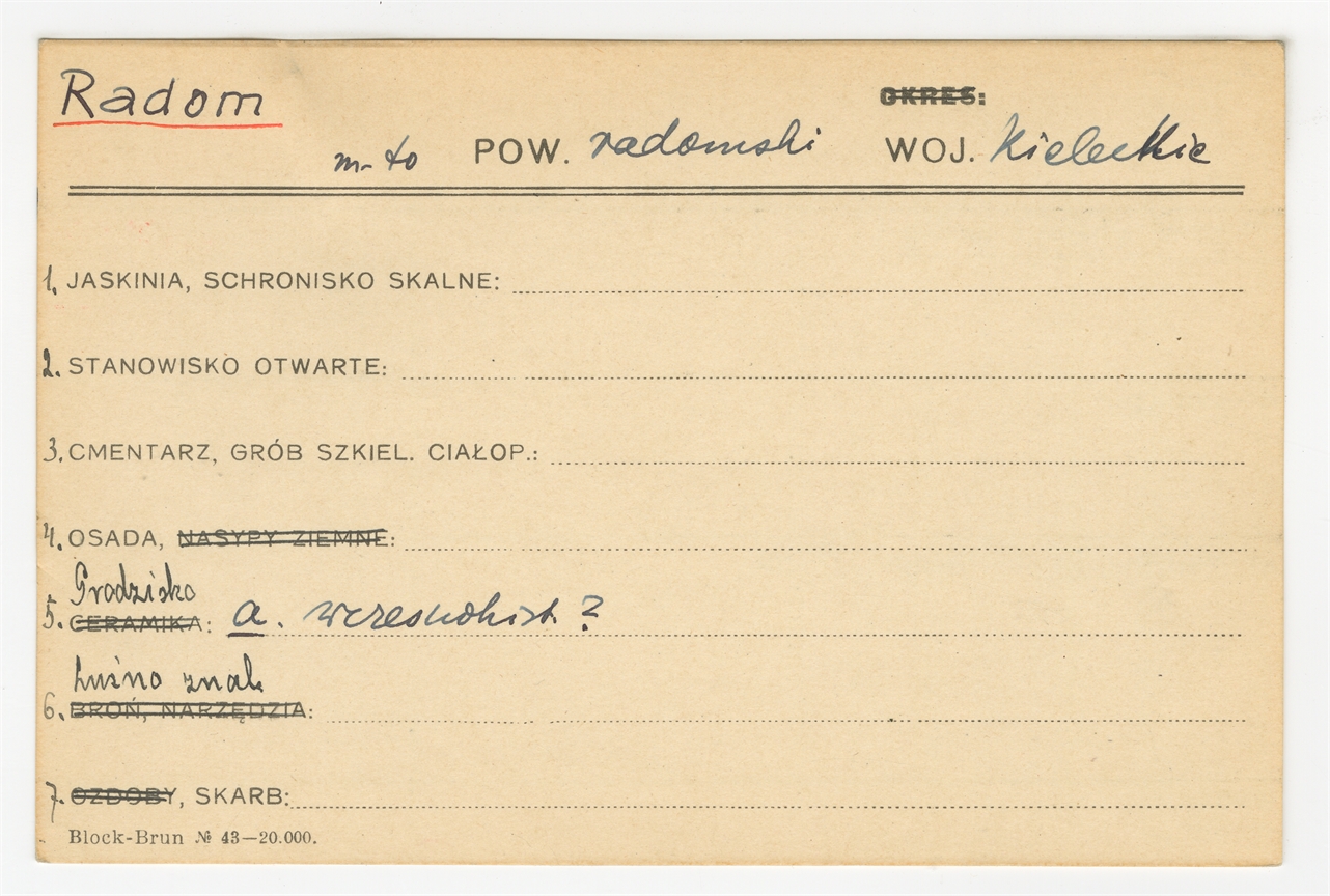 Karta stanowiska "Radom m-to pow. radomski woj. kieleckie" (druk rękopis) - strona 1