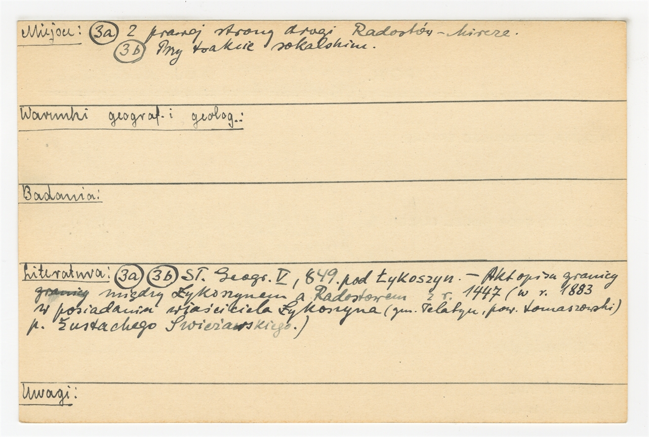 Element 2 - Karta stanowiska "Radostów gm. Mircze pow. hrubieszowski woj. lubelskie" (druk rękopis) - strona 2
