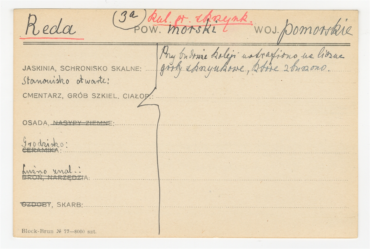 Karta stanowiska "Reda pow. morski woj. pomorskie" (druk rękopis) - strona 1