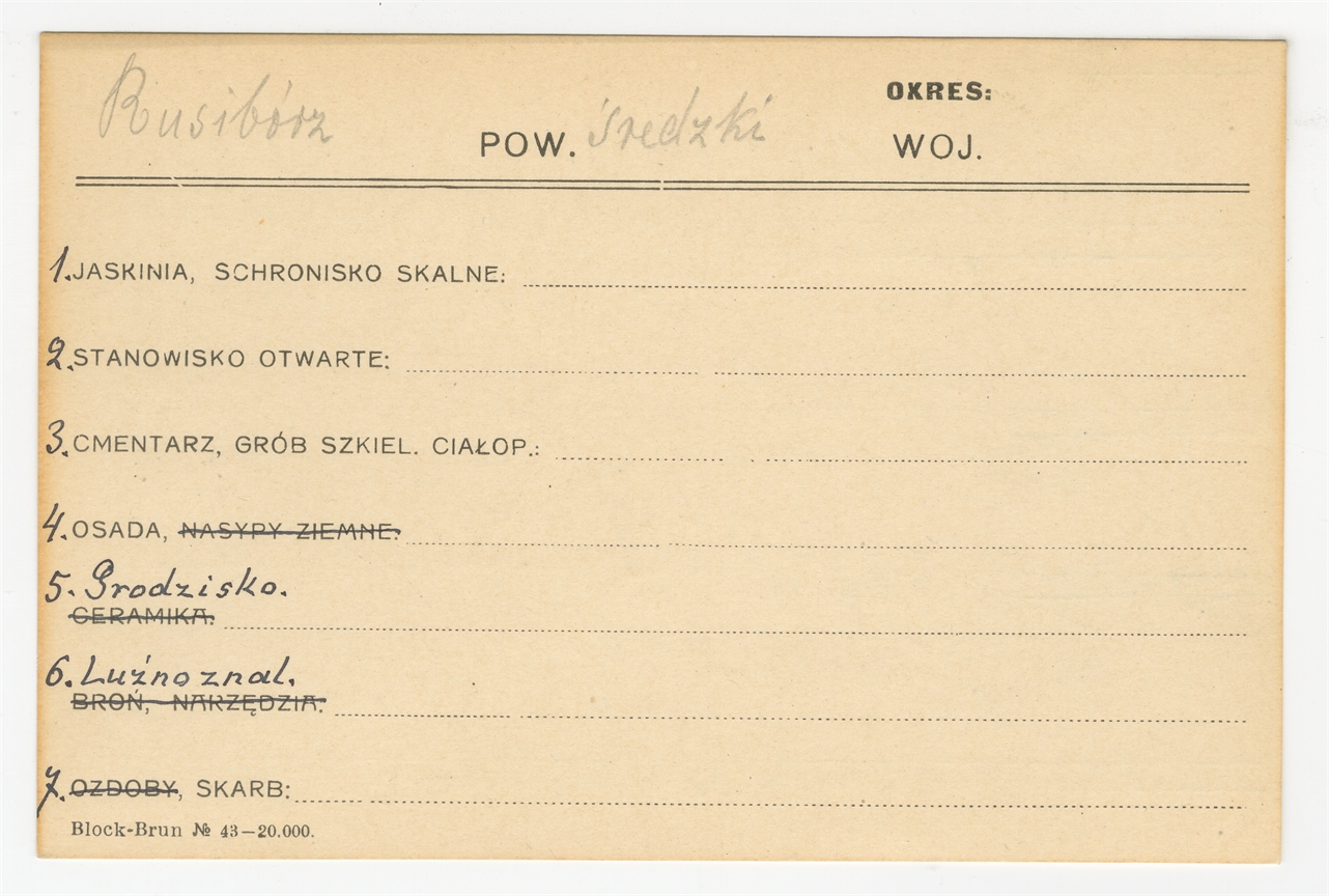 Karta stanowiska "Risibórz pow. średzki woj. [brak]" (druk rękopis) - strona 1