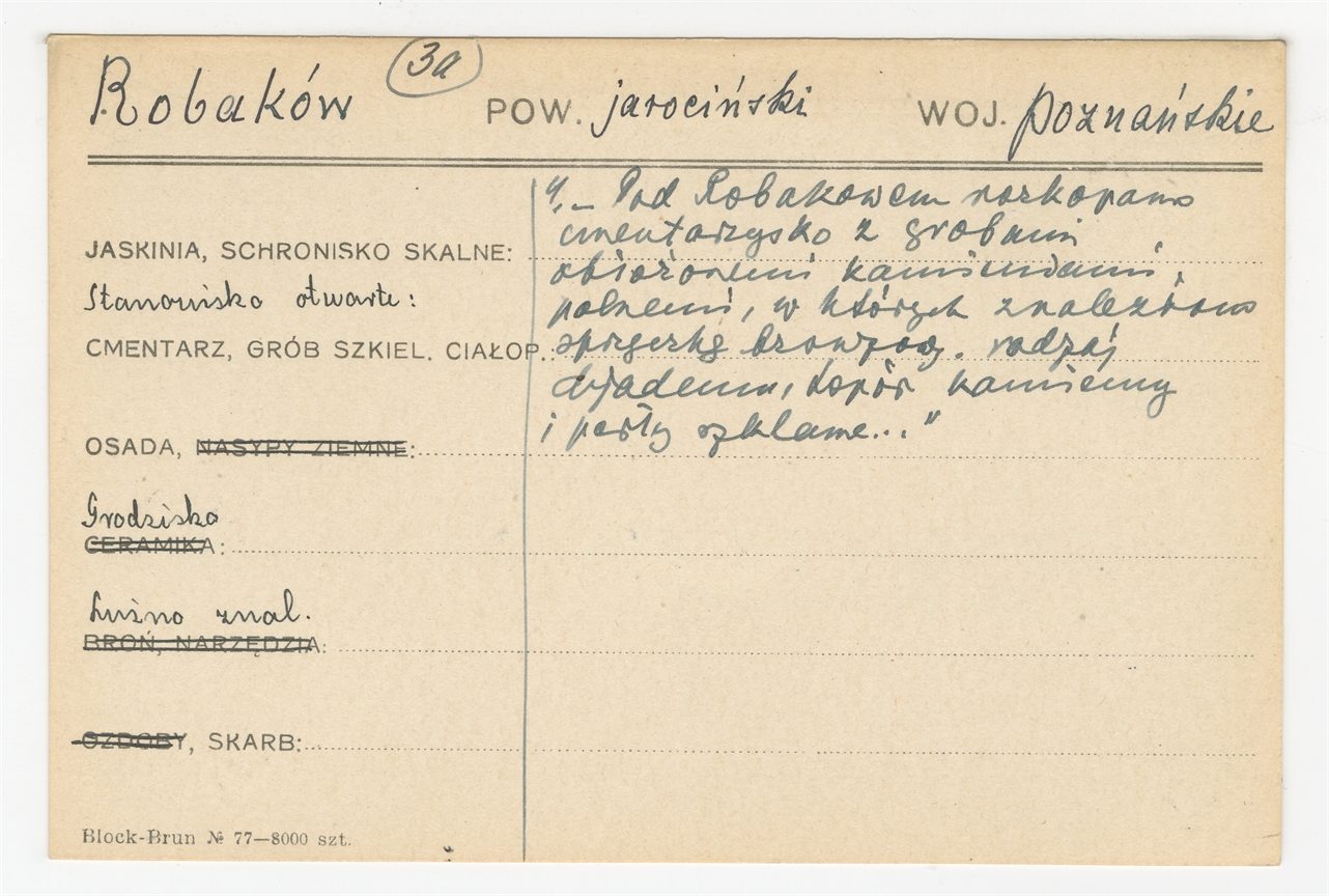 Karta stanowiska 'Robaków pow. jarociński woj. poznańskie" (druk rękopis) - strona 1