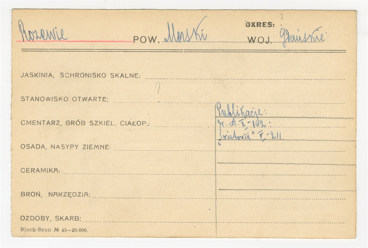 Karta stanowiska "Rozewie pow. Morski woj. Gdańskie" (druk rękopis) - strona 1