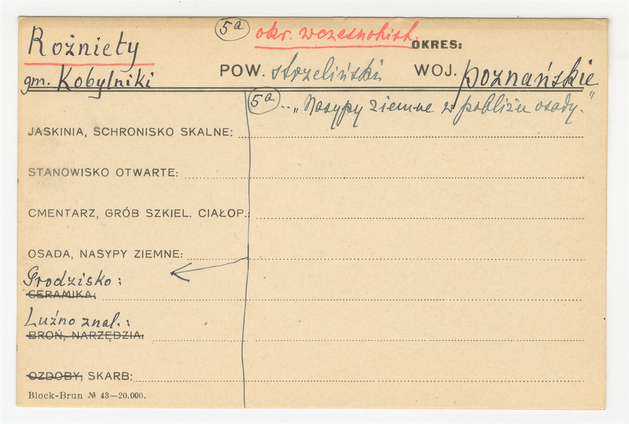 Karta stanowiska "Rożnietym gm. Kobylniki pow. strzeliński woj. poznańskie" (druk rękopis) - strona 1