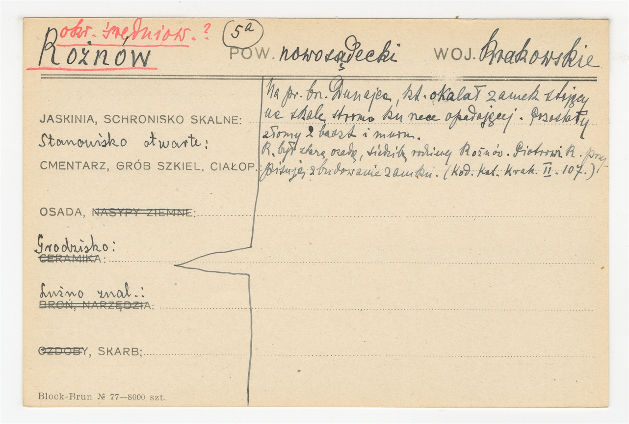 Karta stanowiska "Rożnów pow. nowosądecki woj. Krakowskie" (druk rękopis) - strona 1