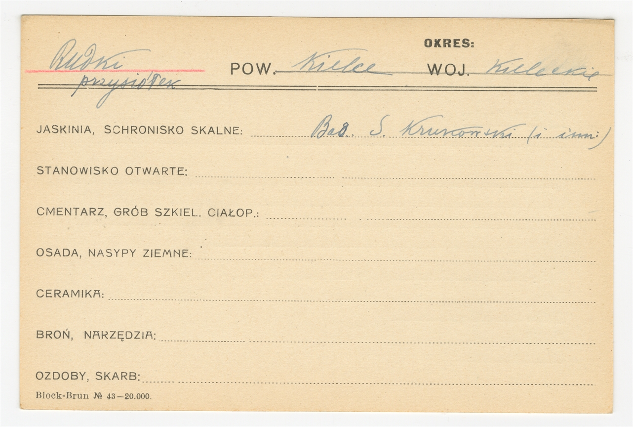 Element 1 - Karta stanowiska Rudki przysiółek pow. Kielce woj. Kieleckie" (druk rękopis) - strona 1