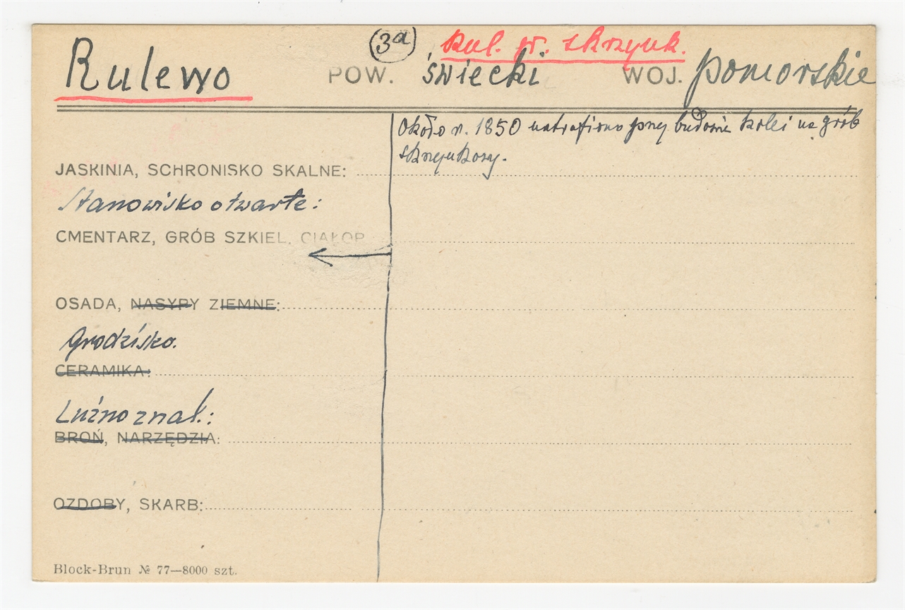 Element 1 - Karta stanowiska "Rulewo pow. świecki woj. pomorskie" (druk rękopis) - strona 1