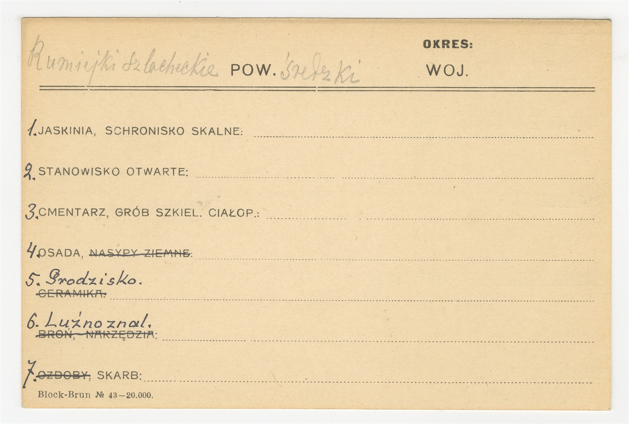 Karta stanowiska "Rumiejki Szlacheckie pow. Średzki woj. [brak]" (druk rękopis) - strona 1