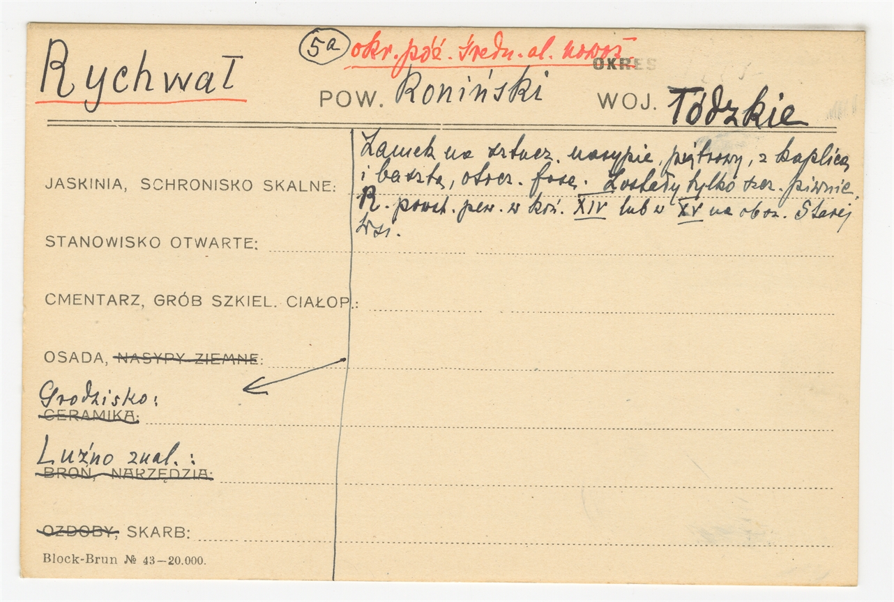 Karta stanowiska "Rychwał pow. Koniński woj. łódzkie" (druk rękopis) - strona 1