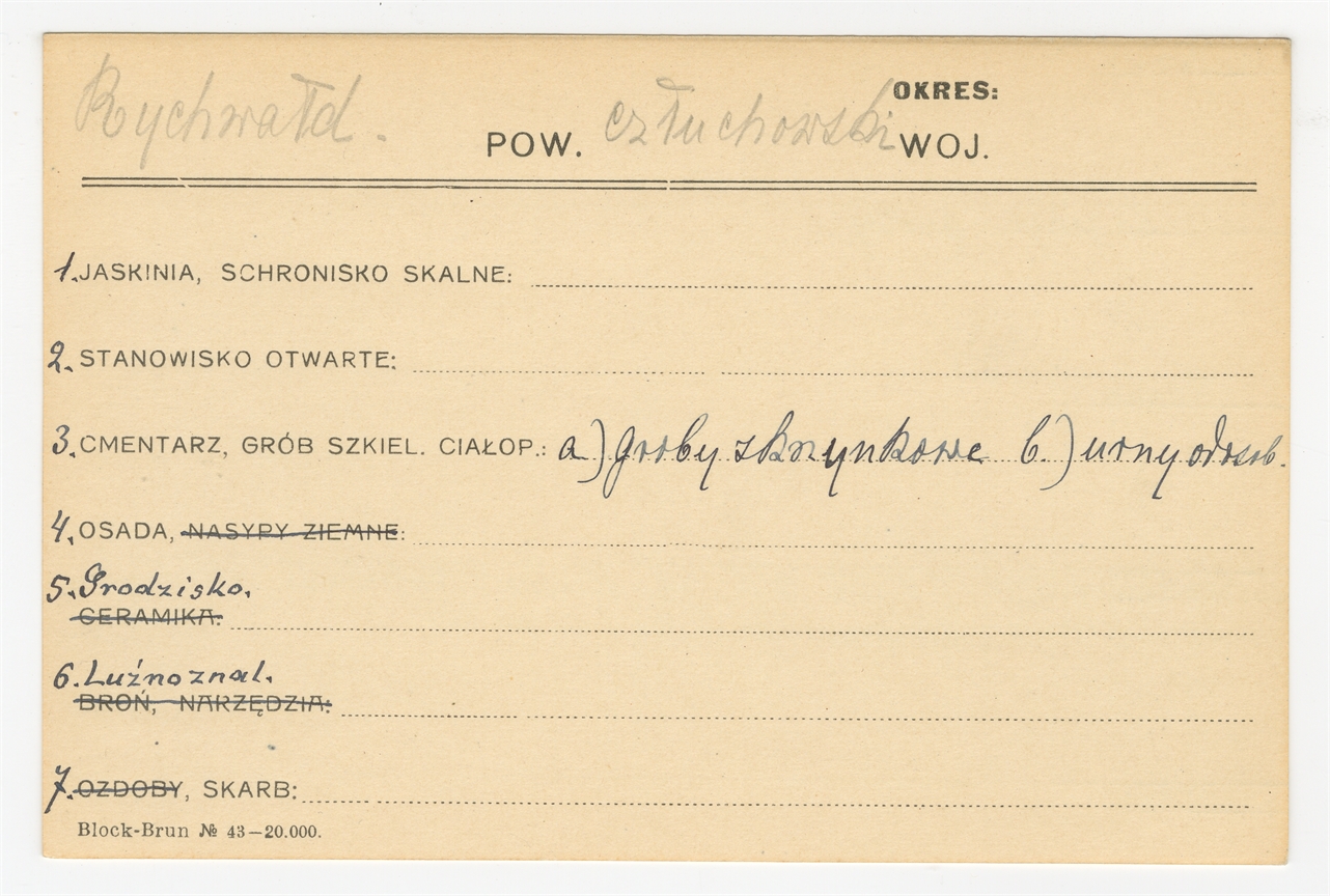 Karta stanowiska "Rychwałd pow. człuchowski woj. [brak]" (druk rękopis) - strona 1