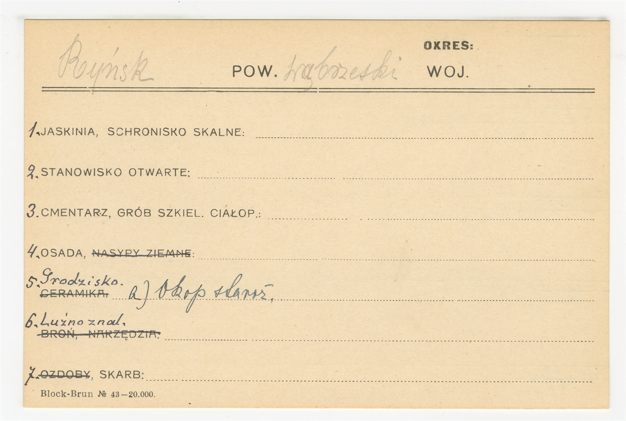 Karta stanowiska "Ryńsk pow. wąbrzeski woj. [brak]" (druk rękopis) - strona 1