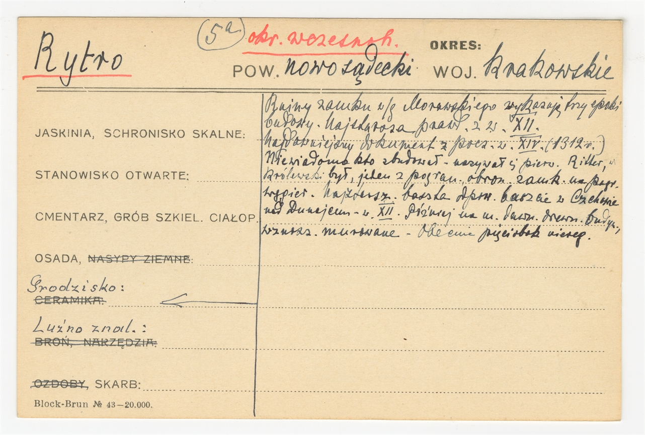 Karta stanowiska "Rytro pow. nowosądecki woj. krakowskie" (druk rękopis) - strona 1