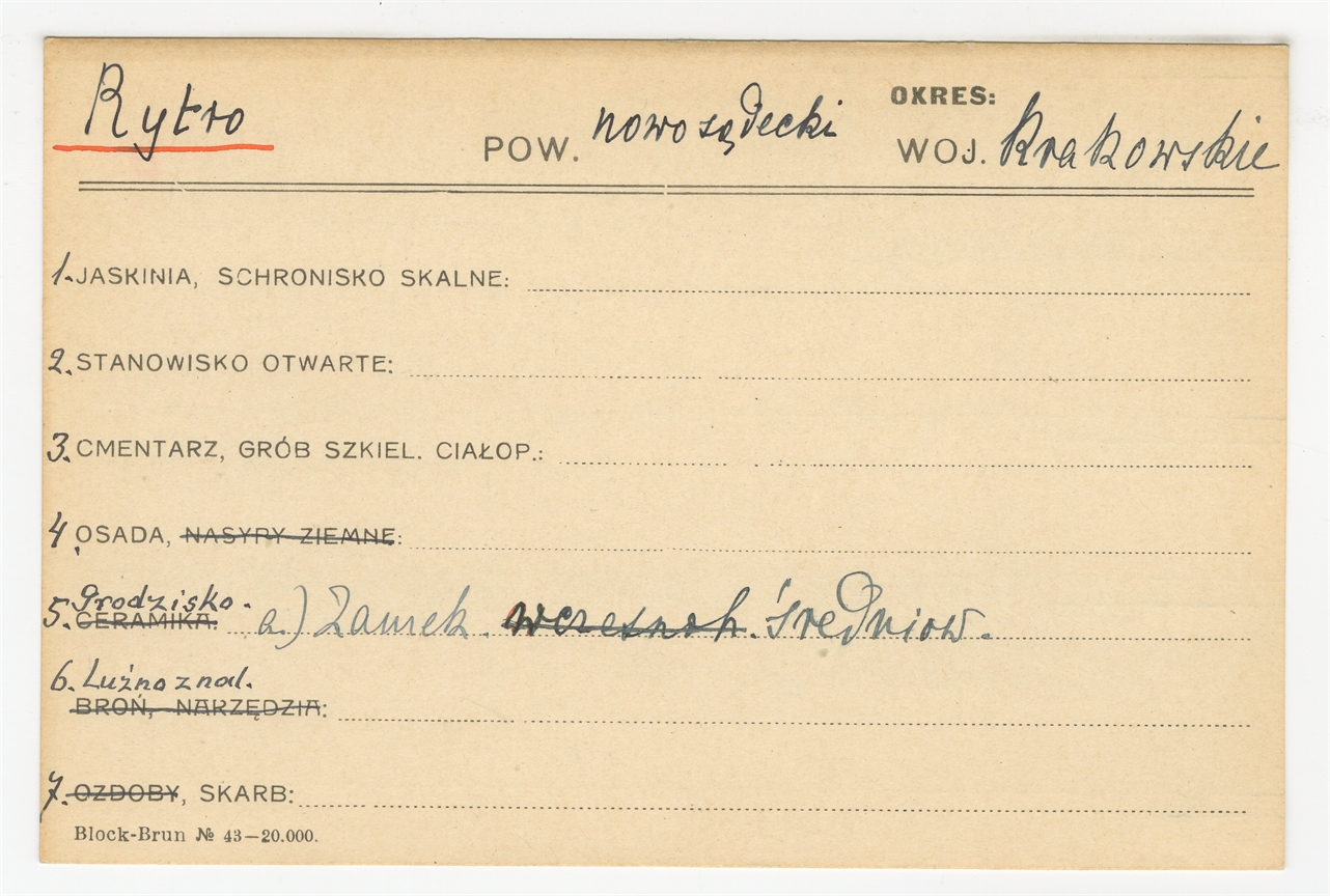 Karta stanowiska "Rytro pow. nowosądecki woj. krakowskie" (druk rękopis) - strona 1