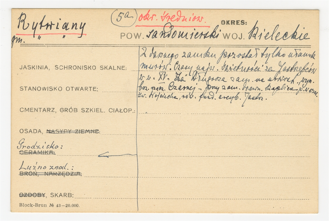 Karta stanowiska "Rytwiany gm. Rytwiany pow. sandomierski woj. kieleckie" (druk rękopis) - strona 1