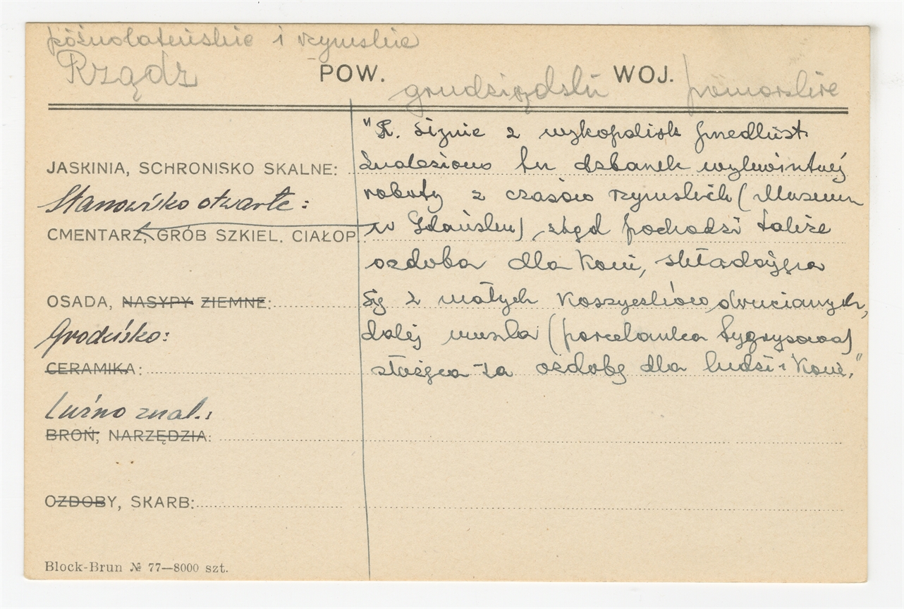 Karta stanowiska "Rządz pow. grudziądzki woj. pomorskie" (druk rękopis) - strona 1