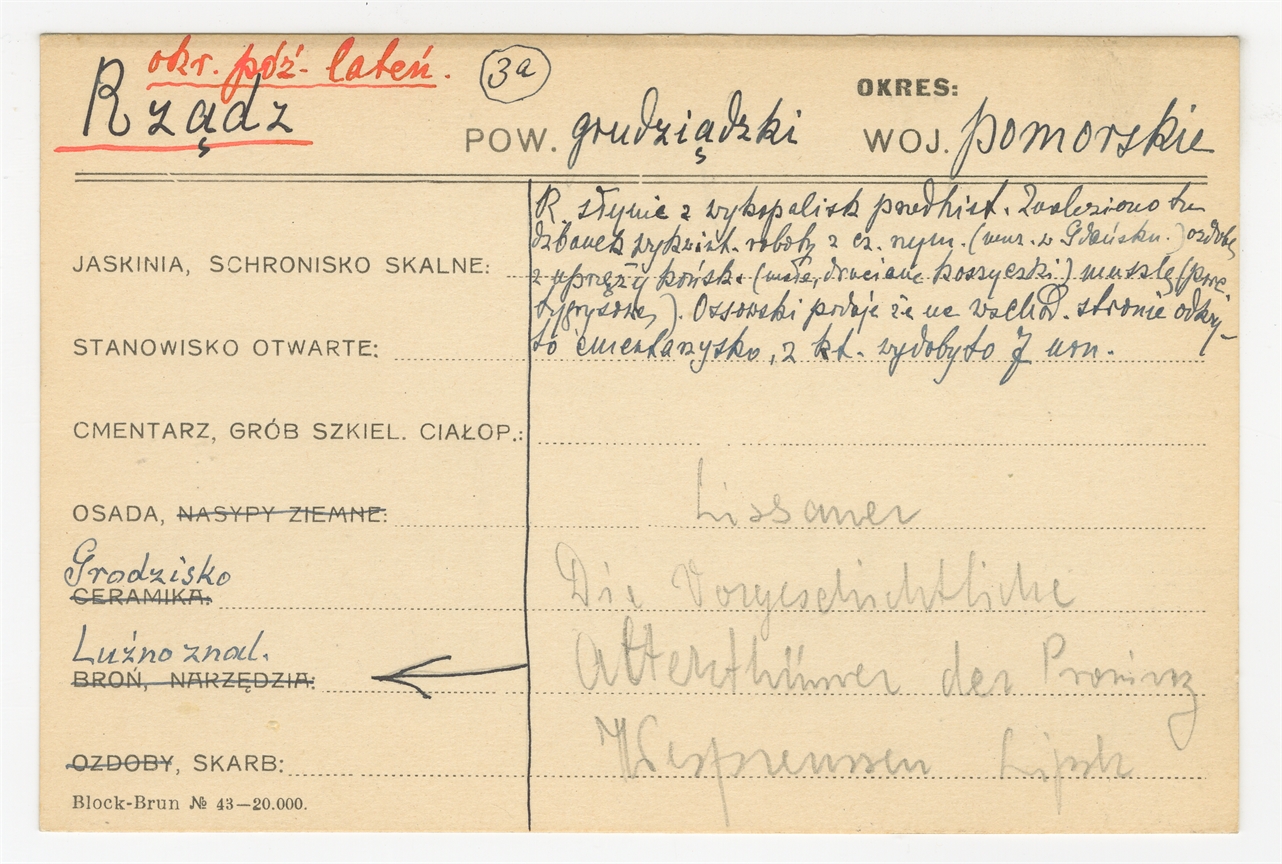 Karta stanowiska "Rządz pow. grudziądzki woj. pomorskie" (druk rękopis) - strona 1