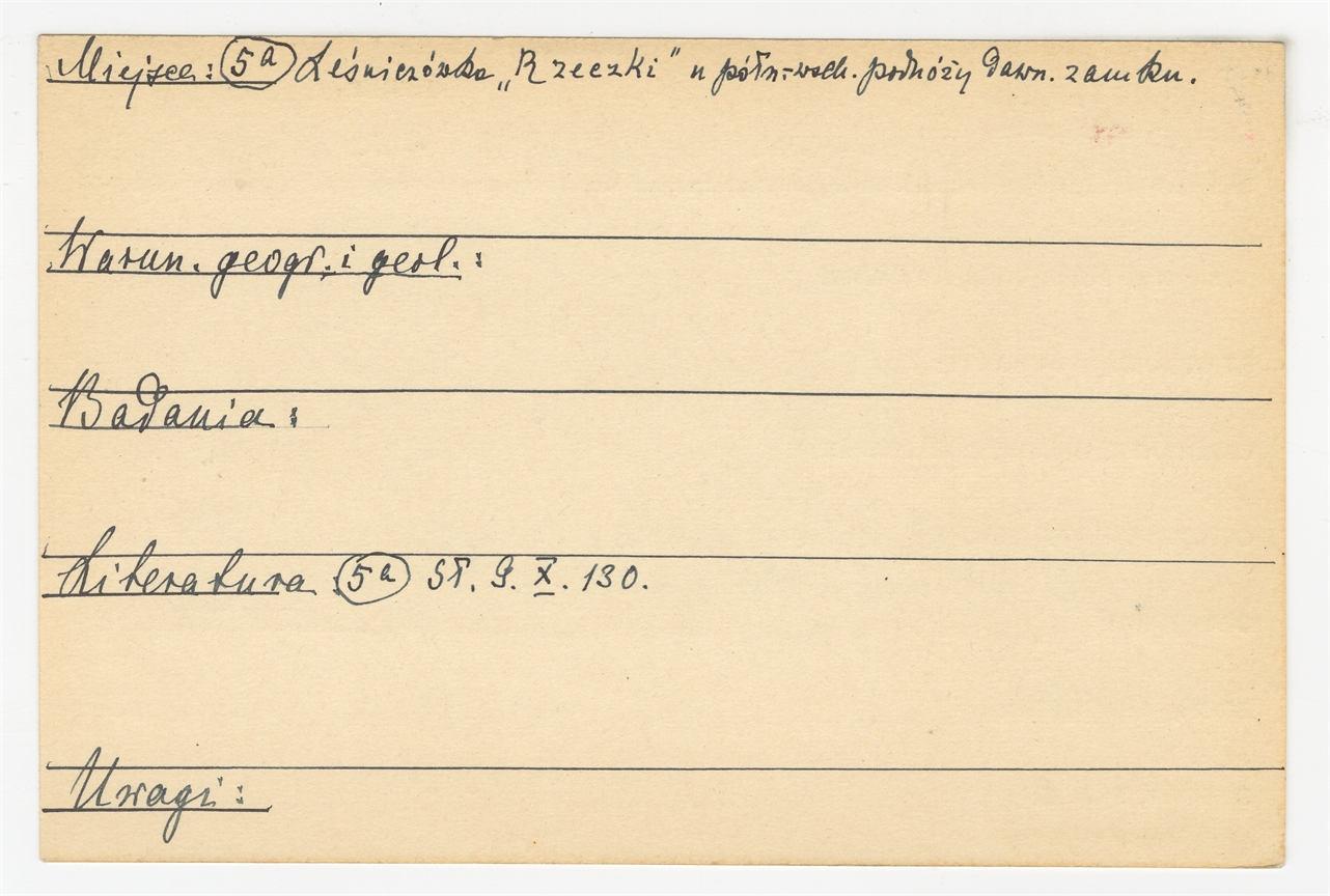 Element 2 - Karta stanowiska "Rzeczki gm. Tenczynek pow. chrzeanowski woj. Krakowskie" (druk rękopis) - strona 2