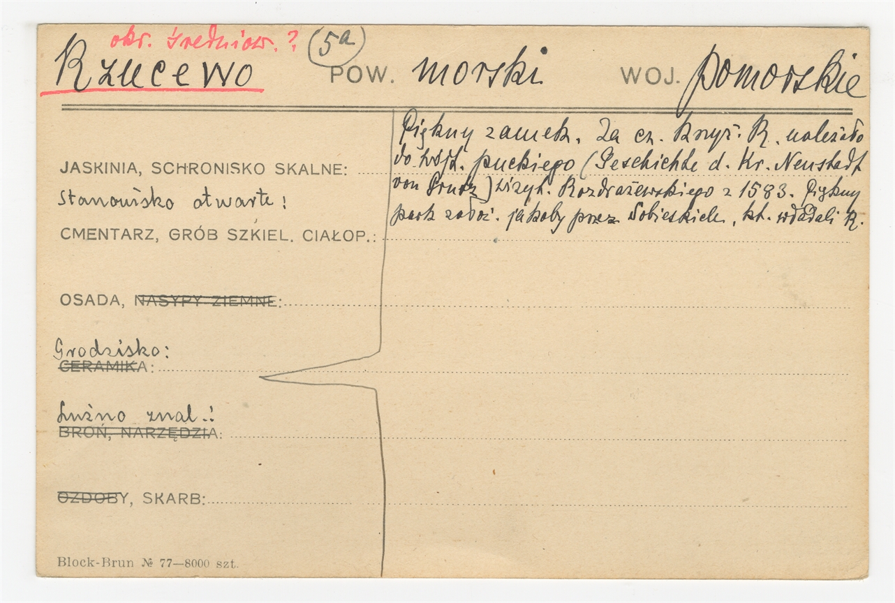 Element 1 - Karta stanowiska "Rzucewo pow. morski woj. pomorskie" (druk rękopis) - strona 1