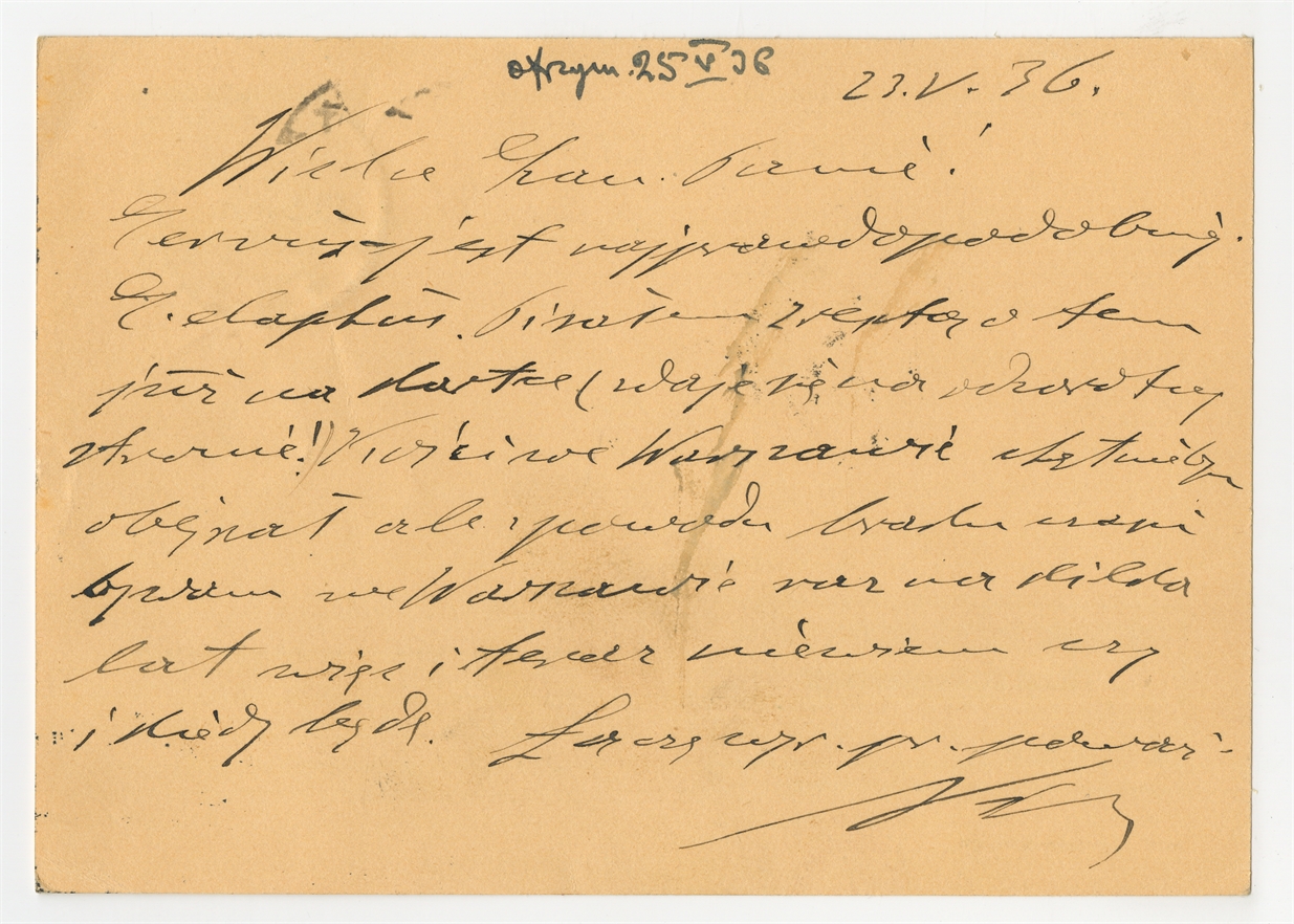 Kartka pocztowa (awers) - list napisany przez prof. dr E. Niezabitowskiego do prof. Stefana Krukowskiego 23 V [19]36 r.