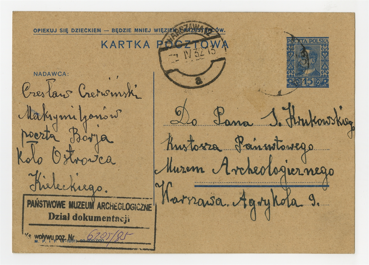 Kartka pocztowa do prof. Stefana Krukowskiego od C. Czerwińskiego Maksymilianów 1 IV 1932 r. - awers